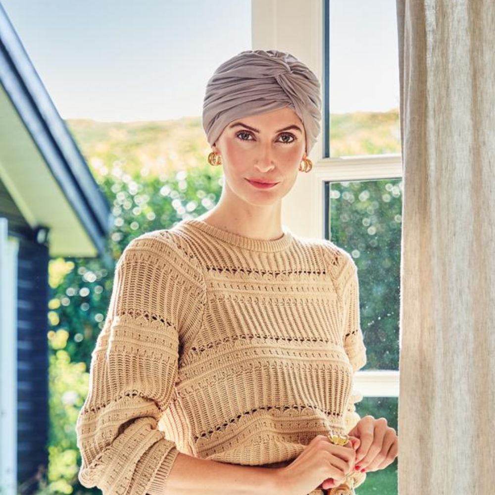 Tämä HocJoyo-turbaani on saatavilla upeassa vaaleanruskeassa sävyssä.